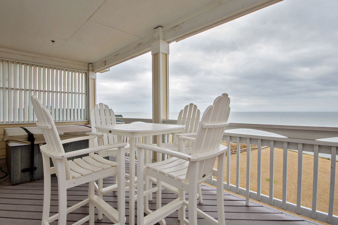 Featuring a private balcony terrace for enjoying the amazing sunsets over the sound while relaxing in a private hot tub.